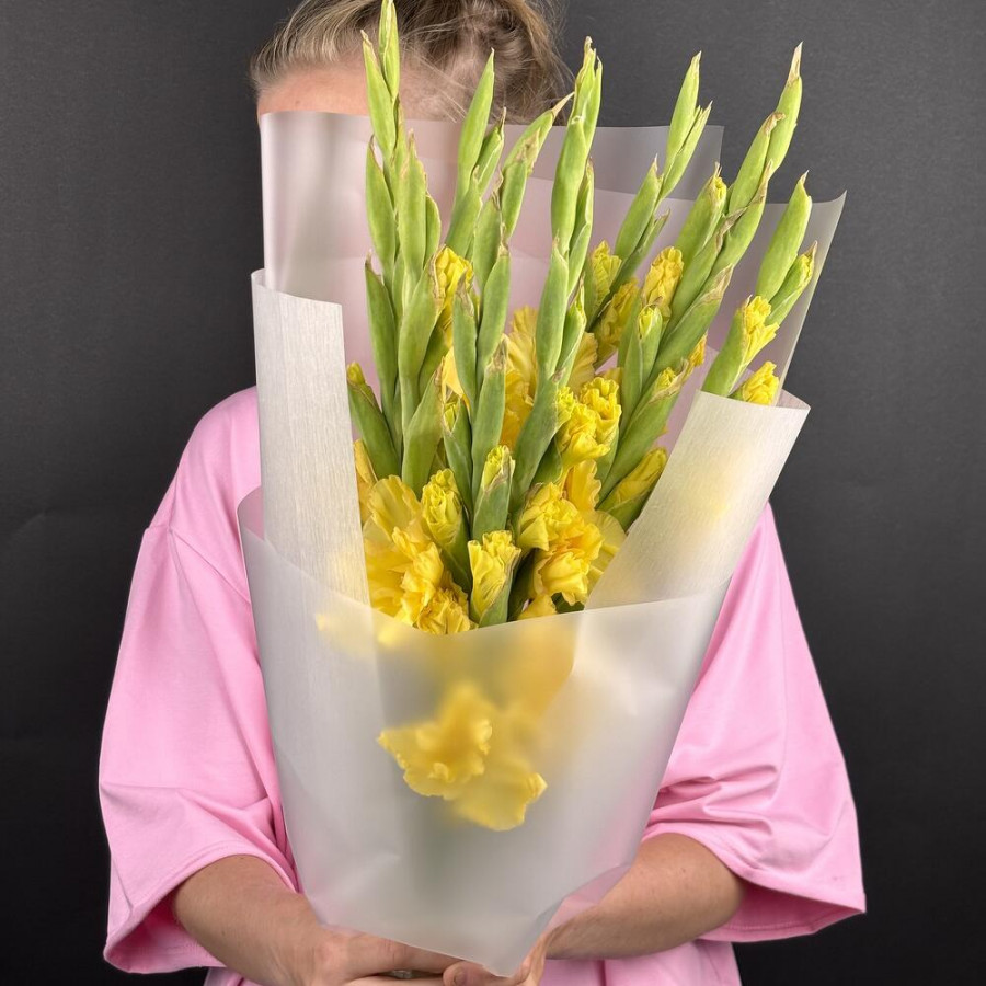 Букет из 9 желтых гладиолусов в Южно-Сахалинске