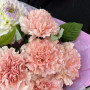 Букет из белых георгин и розовых гвоздик в Южно-Сахалинске